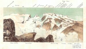1) Le Alpi del Delfinato viste dalla cima del Monte Chaberton (3135). (64,5 x 23,8 cm) in Bollettino del Club Alpino Italiano, n° 20, 1872