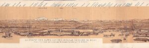 Il litografo ed editore Tensi di Milano ha successivamente ripubblicato questo panorama con diverse dimensioni 292×28 cm e con disegno al tratto. (Coll. Priv.)
