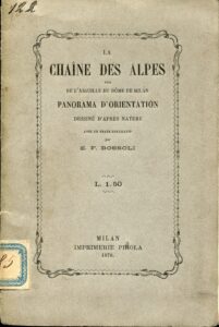11) La Chaine des Alpes vue de l’Aiguille du Dome de Milan. Panorama d’orientation dessiné d’aprè nature avec un texte explicatif par E. F. Bossoli. Milan. Imprimerie Pirola 1878. In 16° (18,5×11,8) pp. 16. Panorama dal Duomo di Milano (155,7 x 14,9 cm ).