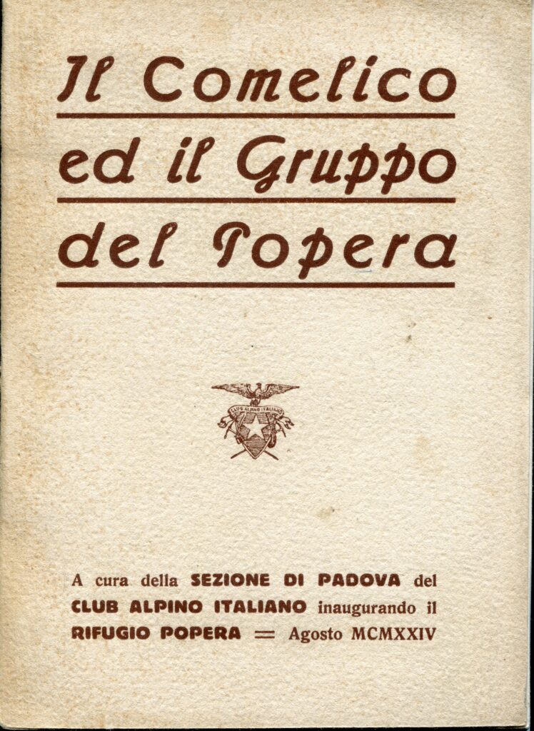 Interessante e non comune guida, edita in occasione dell’inaugurazione del rifugio Popera nell’agosto 1924. 40 € |