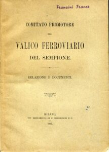 COMITATO PROMOTORE DEL VALICO FERROVIARIO DEL SEMPIONE. RELAZIONE E DOCUMENTI.