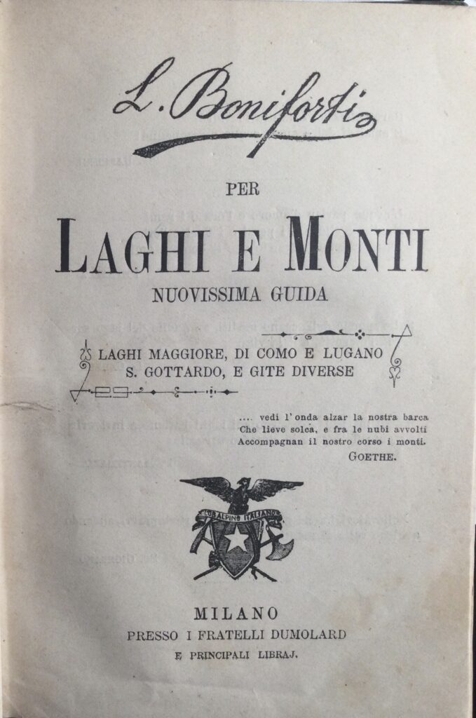 | Illustrazioni: | 10 tav. di vedute, altre 5 a doppia pag., 1 panorama di Como più volte ripiegato, 1 carta dei laghi a doppia pag., conservata la copertina posteriore con cartina. |
