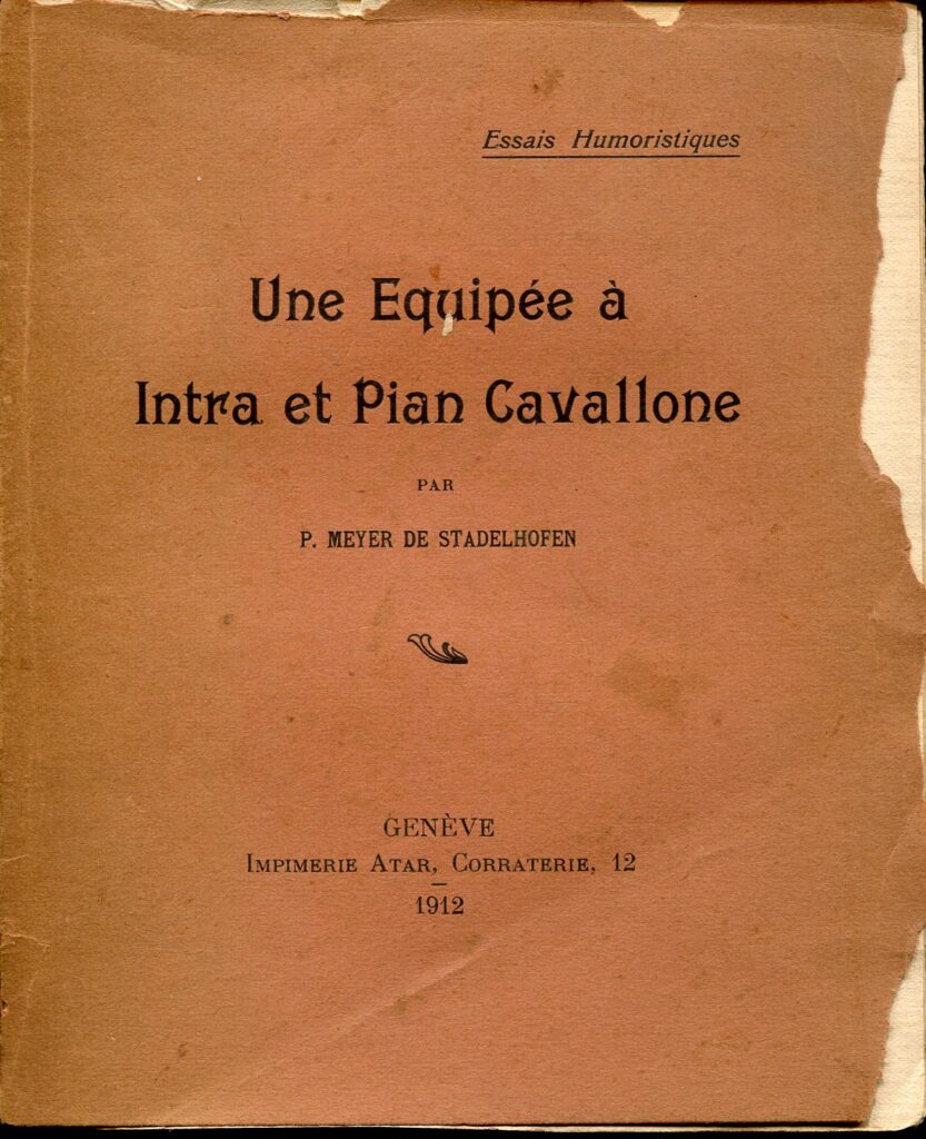 Curiosa e insolita testimonianza di un gruppo di alpinisti ginevrini in gita sul Lago Maggiore e al Pian Cavallone. Alcune mancanze alla copertina, ma buono stato.